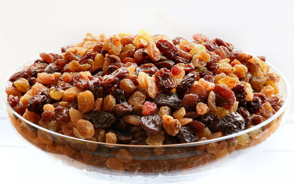 Eisenaufnahme: Das Eisen in Rosinen kann vom Körper besser aufgenommen werden, wenn die Rosinen zusammen mit Vitamin C-haltigen Lebensmitteln konsumiert werden, da sie selbst kaum Vitamin C enthalten.